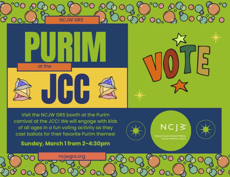 The Greater Rochester Section was founded just one year later in 1894, in keeping with Rochester’s long tradition of feminism and the fight for equal rights. NCJW GRS remains committed to improving the lives of our fellow Rochesterians through advocacy, education, and philanthropy.