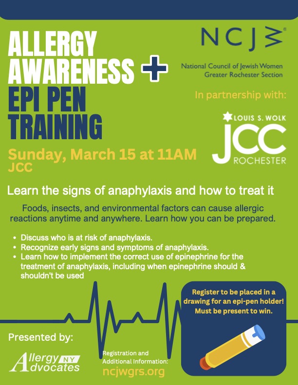 At the Louis S. Wolk JCC Learn the signs of anaphylaxis and how to treat it Foods, insects, and environmental factors can cause allergic reactions anytime and anywhere. Learn how you can be prepared. Discuss who is at risk of anaphylaxis. Recognize early signs and symptoms of anaphylaxis. Learn how to implement the correct use […]