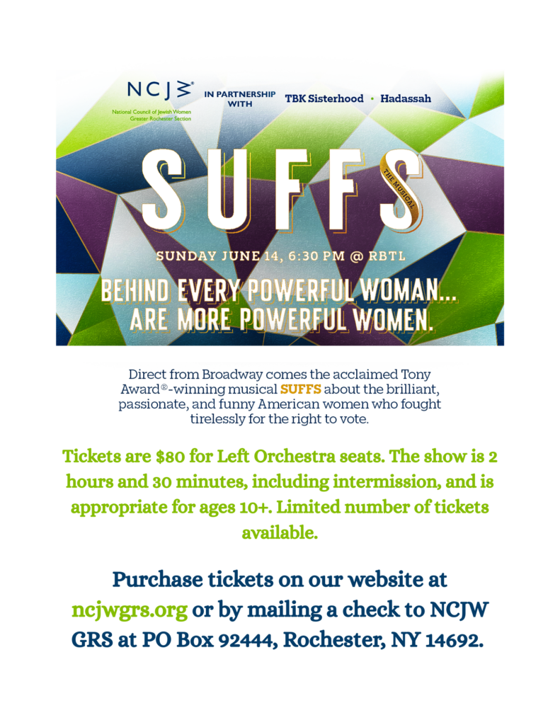 Join NCJW GRS, TBK Sisterhood and Hadassah at SUFFS…